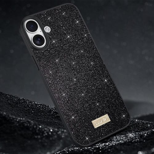 Funda de teléfono Sulada para iPhone 16 Plus cuero híbrido TPU con purpurina (Negro)
