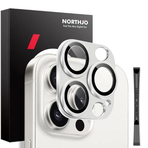 Protector de Lente de Cámara Northjo para iPhone 16 Pro y 16 Pro Max Película de Vidrio Templado (Plata)