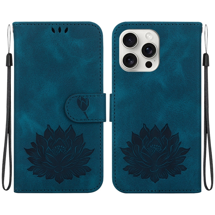 For iPhone 16 Pro Lotus Embossed Leather Case (Dark Blue)