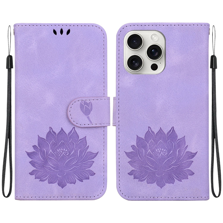 Pour iPhone 16 Pro Étui en cuir gaufré Lotus (Violet)