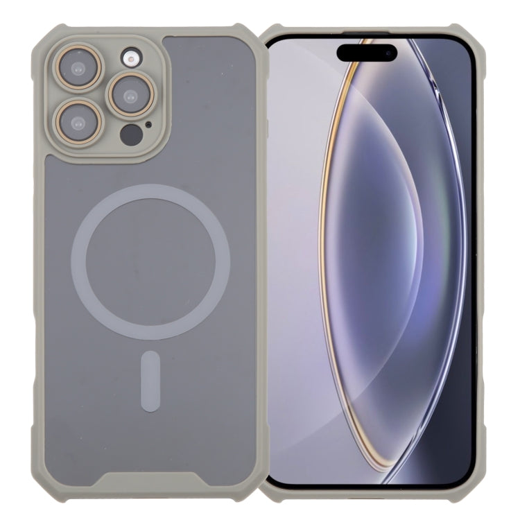 Funda para iPhone 16 Pro Max Acrílico + TPU con Bocina Magnética Magsafe y Película de Lente Dos Colores (Gris)
