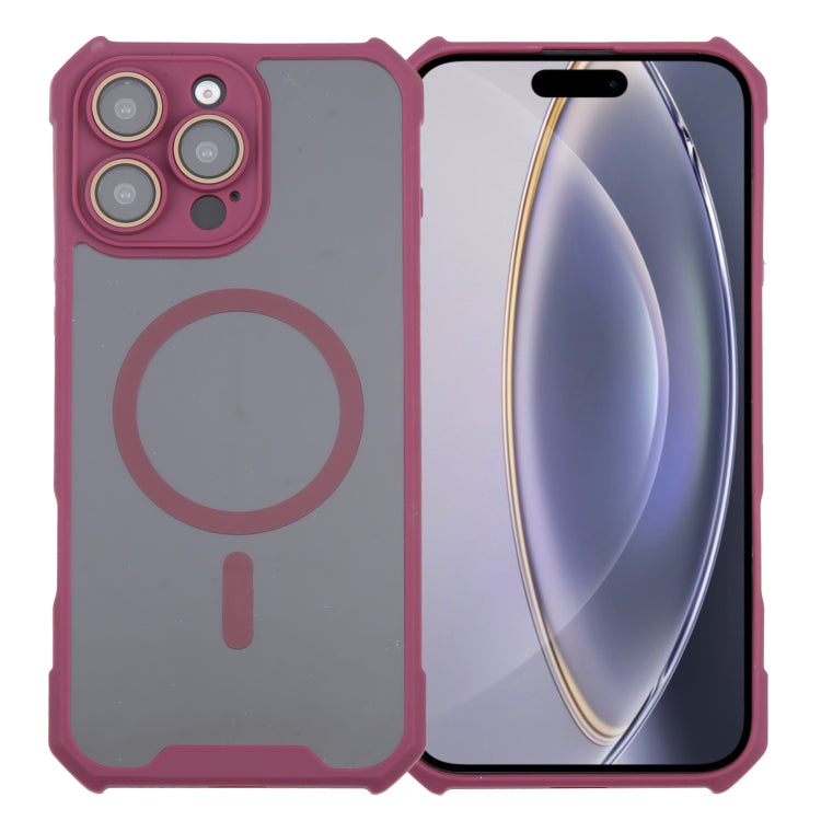 Funda para iPhone 16 Pro Max Acrílico + TPU con Bocina Magnética Magsafe y Película de Lente Dos Colores (Roja)