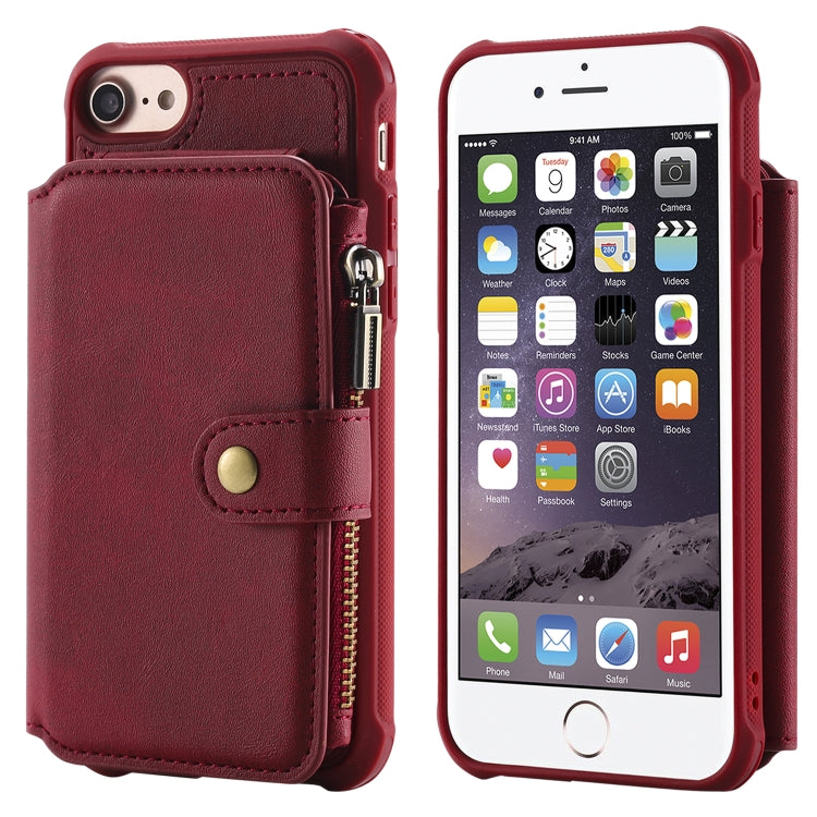 Estuche protector para iPhone 6 con cremallera ranuras para tarjetas soporte fotos función billetera (Rojo)