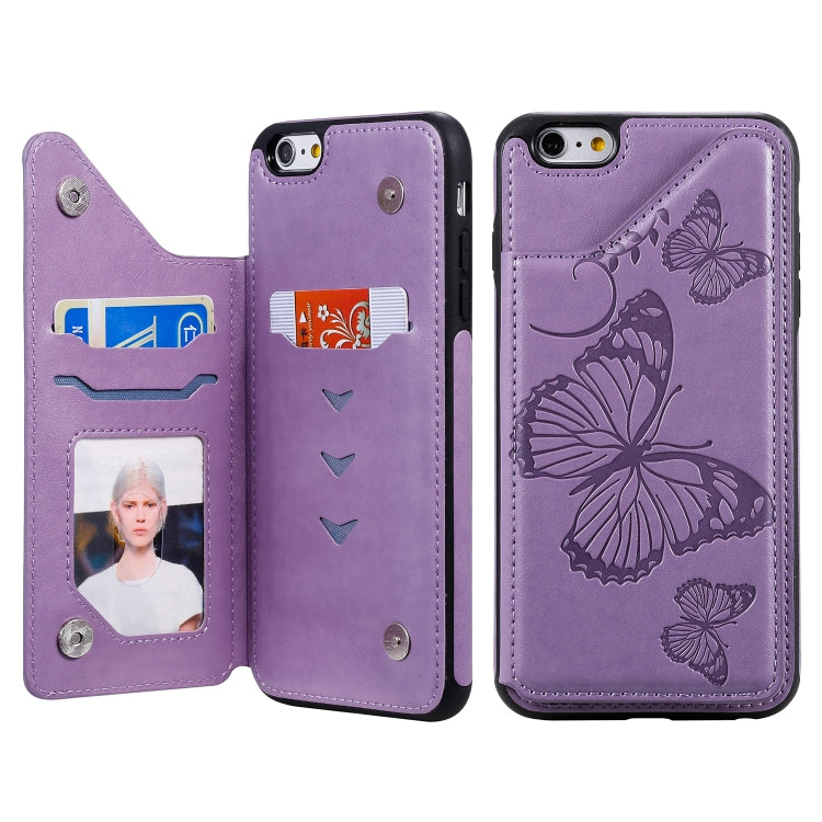 Funda Protectora iPhone 6 Plus Patrón Mariposa a Prueba de Golpes con Soporte Ranuras Tarjetas y Marco (Púrpura)