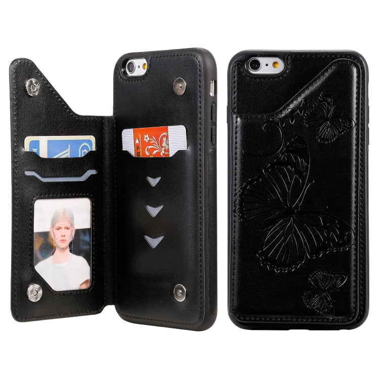 Pour iPhone 6 Plus Étui de protection antichoc à motif imprimé papillon avec support, fentes pour cartes et cadre photo (noir)