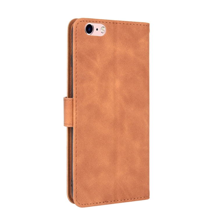 Funda para iPhone 6 Plus y 6S Plus Hebilla Magnética Piel Sintética Textura Becerro Abatible Horizontal Soporte Ranuras Tarjetas Billetera (Marrón)