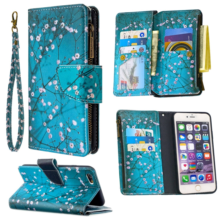 Funda de Cuero para iPhone 6S Plus y 6 Plus con Tapa Horizontal, Soporte, Ranuras y Cremallera (Plum Blossom)