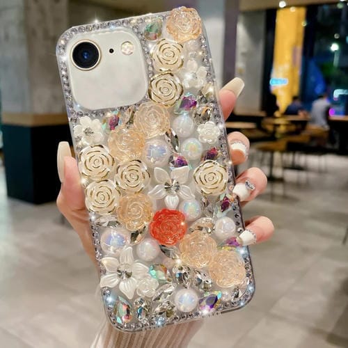 Funda para Teléfono Apple iPhone 7/8 Rose Hand-Set Pearl Diamond PC (Albaricoque)