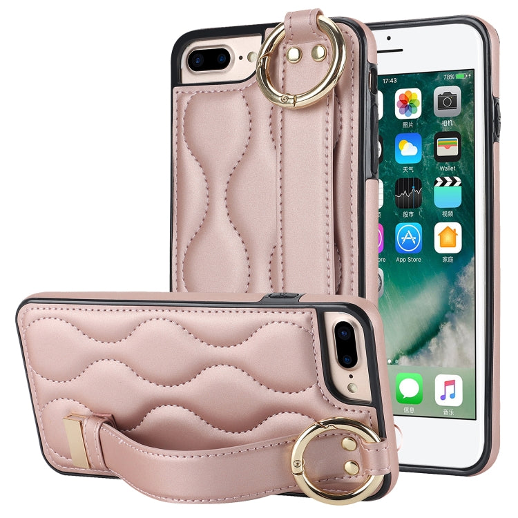 Funda para teléfono iPhone 7 Plus 8 Plus antideslizante cobertura completa anillo PU con muñequera (Oro Rosa)