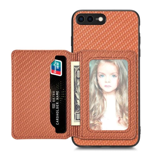 Caja de Teléfono para iPhone 7 Plus 8 Plus con Bolsa de Tarjeta Magnética Fibra de Carbono (Marrón)