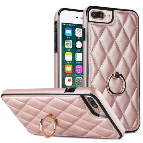 Estuche de Teléfono iPhone 7 Plus 8 Plus Cuero PU Rómbico con Soporte Anillo (Oro Rosa)