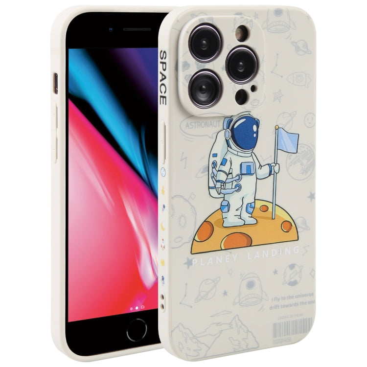 Funda de teléfono iPhone 7 Plus 8 Plus Patrón de Astronauta Silicona Borde Recto (Planet Landing-Blanco)