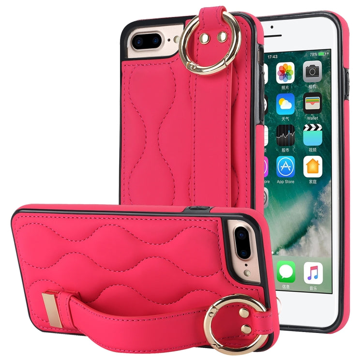 Funda para iPhone 7 Plus Antideslizante Cobertura Completa Anillo PU con Muñequera (Rose Red)