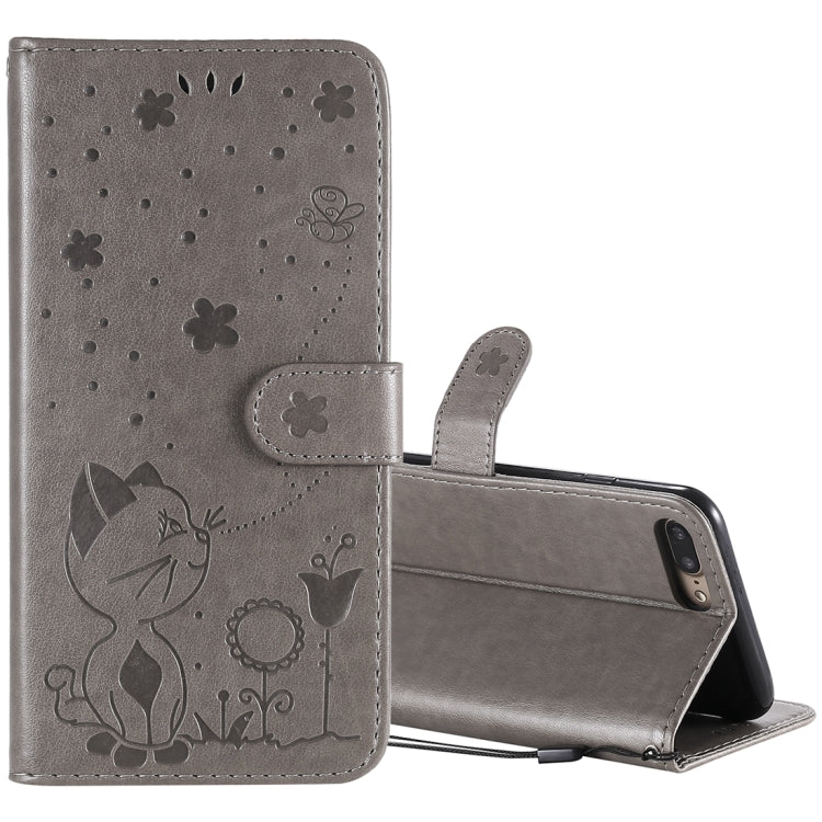 Funda de Cuero Cat Bee para iPhone 8 Plus y 7 Plus con Tapa Horizontal, Soporte, Ranuras para Tarjetas y Billetera (Gris)