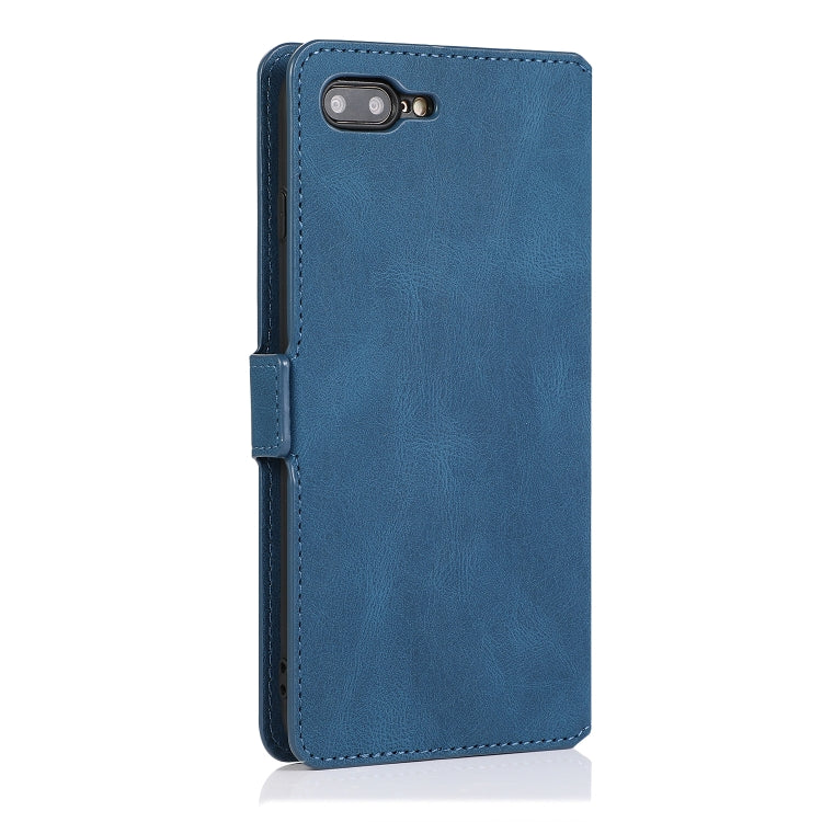 Estuche de Cuero iPhone 8 Plus 7 Plus Cierre Magnético Retro Soporte Ranuras Tarjetas Marco Fotos Billetera (Azul Marino)