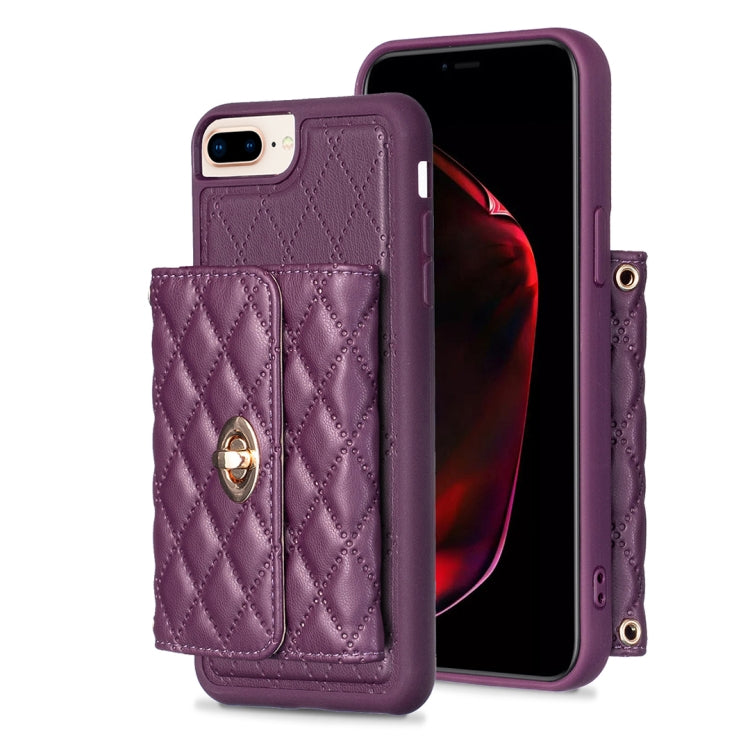 Estuche para Teléfono iPhone 8 Plus 7 Plus Cuero Rómbico Hebilla Metal Horizontal (Púrpura Oscuro)