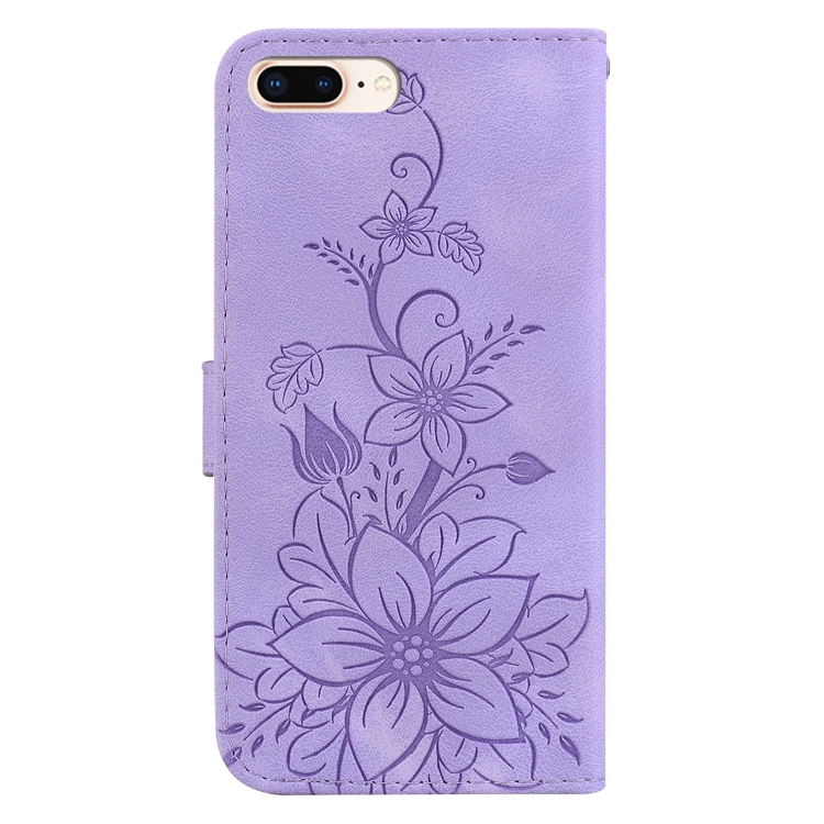 Funda de Cuero Apple iPhone 8 Plus/7 Plus con Relieve Lily (Púrpura)