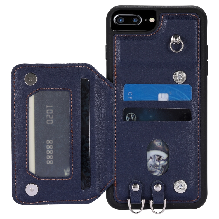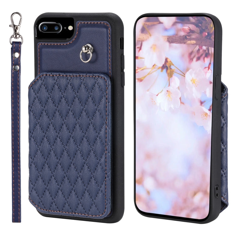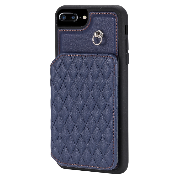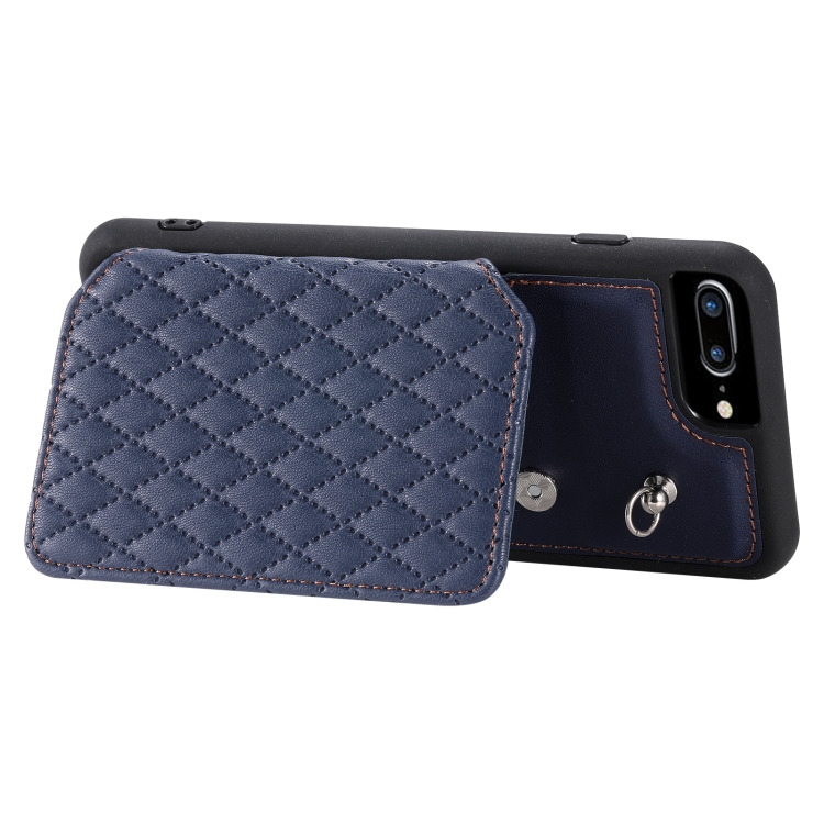 Funda para Teléfono iPhone 8 Plus/7 Plus con Bolsa para Tarjetas Textura de Rejilla y Cordón (Azul)