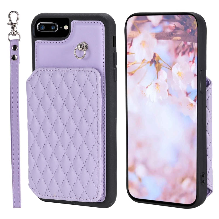 Funda para Teléfono iPhone 8 Plus/7 Plus con Bolsa para Tarjetas Textura de Rejilla y Cordón (Púrpura)