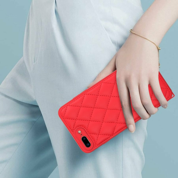 Funda para teléfono iPhone 8 Plus/7 Plus con textura rómbica y cordón doble (Rojo)