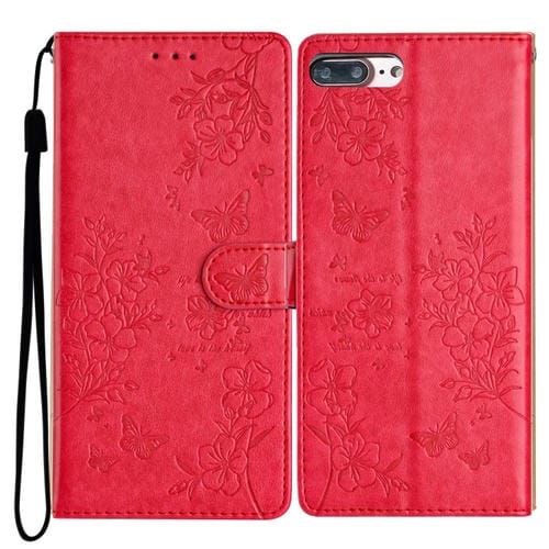 Funda para Teléfono iPhone 8 Plus 7 Plus Cuero con Relieve Flor Amor y Mariposa (Rojo)