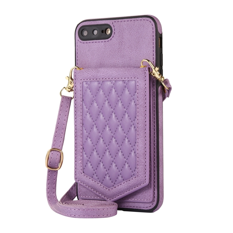 Funda para iPhone 8 Plus y 7 Plus Rhombic Texture Rfid con Cordón y Espejo (Púrpura)