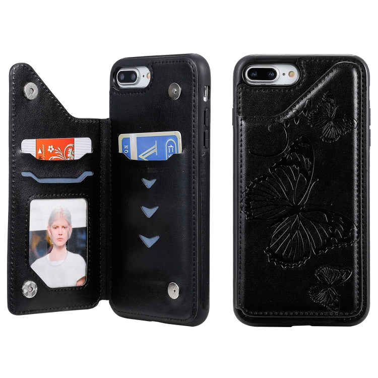 Funda Protectora para iPhone 8 Plus y 7 Plus Estampado Mariposas con Soporte y Ranuras para Tarjetas (Negro)