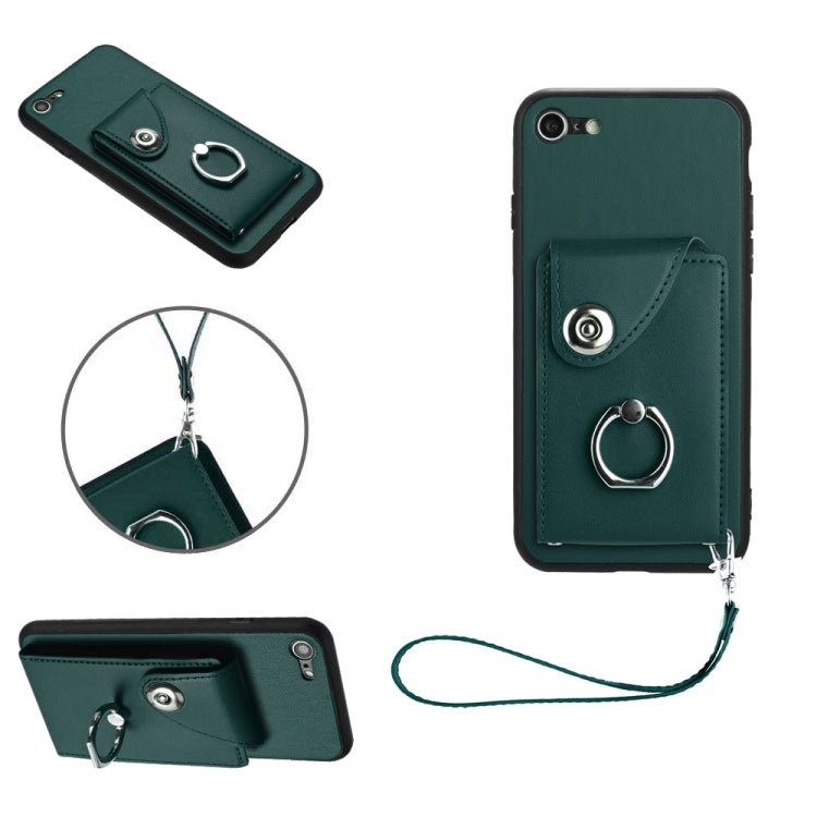 Funda para teléfono iPhone SE 2022/SE 2020/6/7/8 Bolsa para Tarjeta Soporte para Anillo de PU con Cordón (Verde)