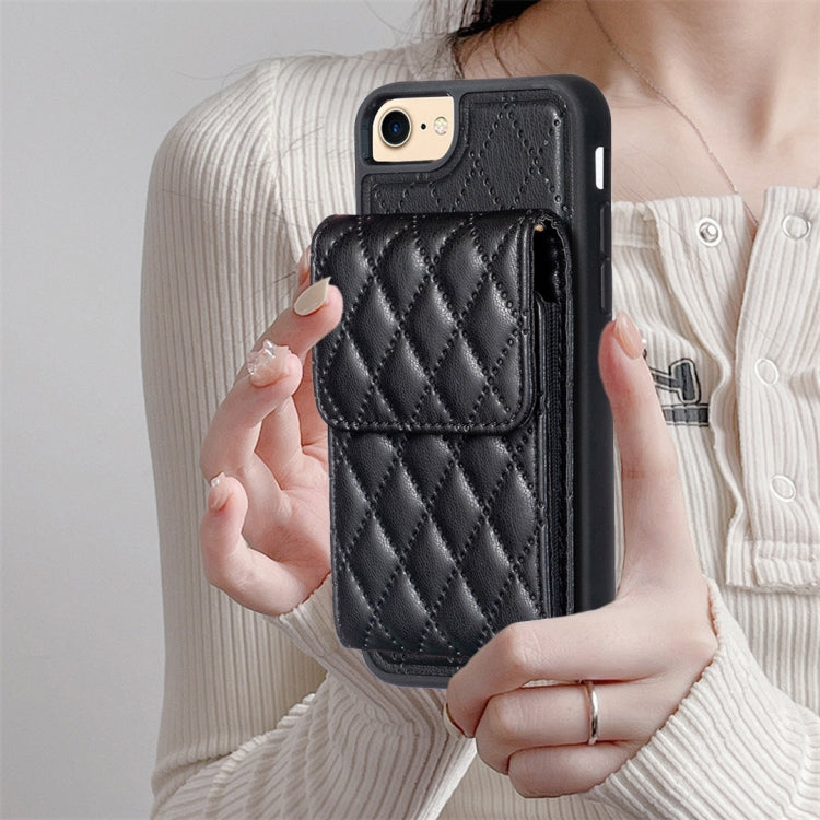 For iPhone SE 2022 / SE 2020 / 7 / 8 Vertical Wallet Rhombic Leather Phone Case (Black)