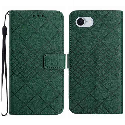 Funda de Cuero para iPhone 16E Textura Cuadrícula Rómbica (Verde)