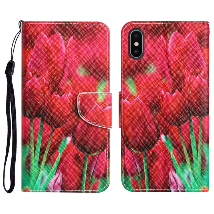 For iPhone X Colored Drawing Leather Phone Case (Tulips)