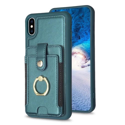 Caja de teléfono Bf27 para iPhone X y Xs con soporte para tarjeta y anillo de metal (Verde)