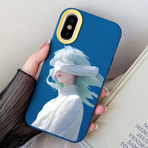 Funda híbrida para iPhone X Xs Blindfold Girl PC y TPU (Azul Real)