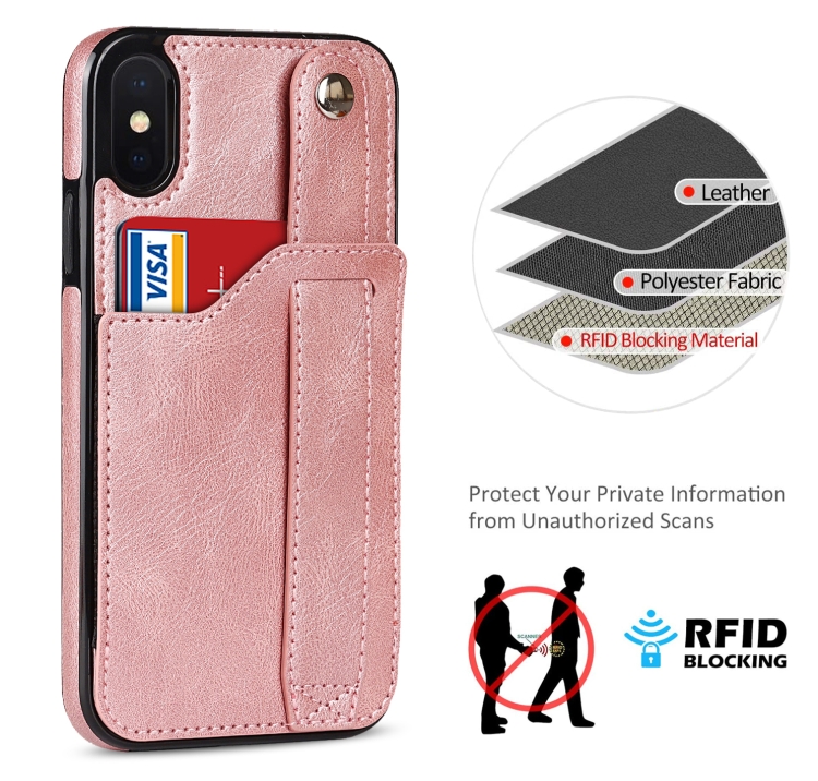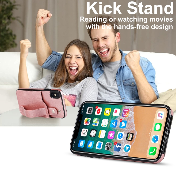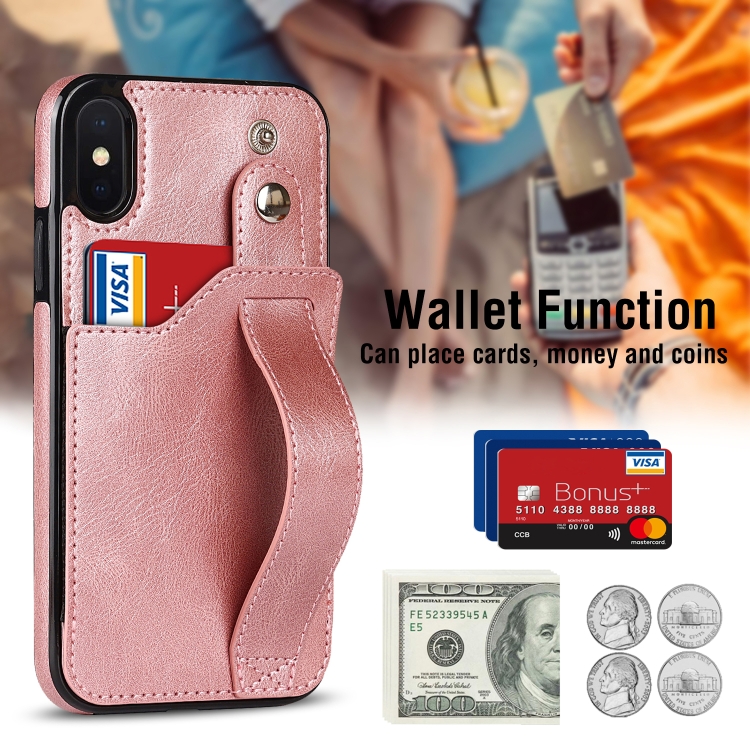 Funda para iPhone X Xs Crazy Horse Texture Cuero TPU + PU a Prueba de Golpes con Ranura para Tarjeta y Correa para la Muñeca (Oro Rosa)