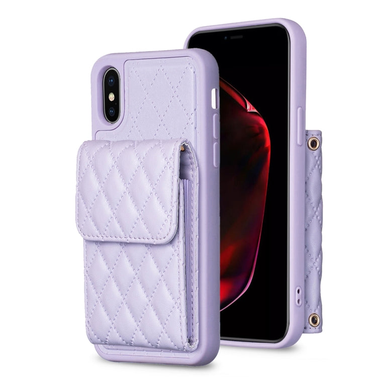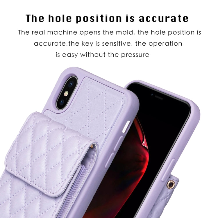 Estuche de Teléfono Cuero Rómbico con Billetera Vertical para iPhone X / Xs (Púrpura)