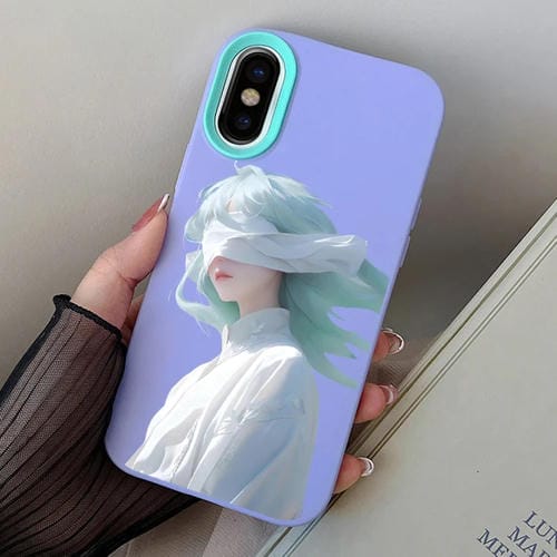 Estuche híbrido para teléfono iPhone X Xs TPU con PC con Los Ojos Vendados (Púrpura)