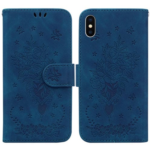 Estuche para Teléfono iPhone X Xs Cuero En Relieve Butterfly Rose (Azul)
