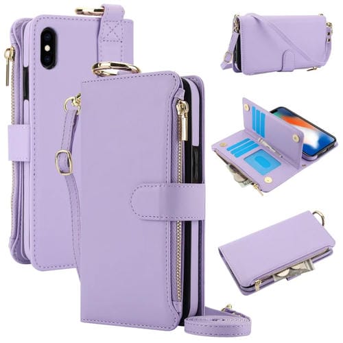 Funda para Teléfono iPhone X / Xs Cuero con Billetera Multifuncional y Anillo (Púrpura)
