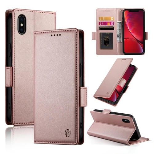 Pour iPhone X/XS Étui de téléphone en cuir givré magnétique à boucle latérale (or rose)