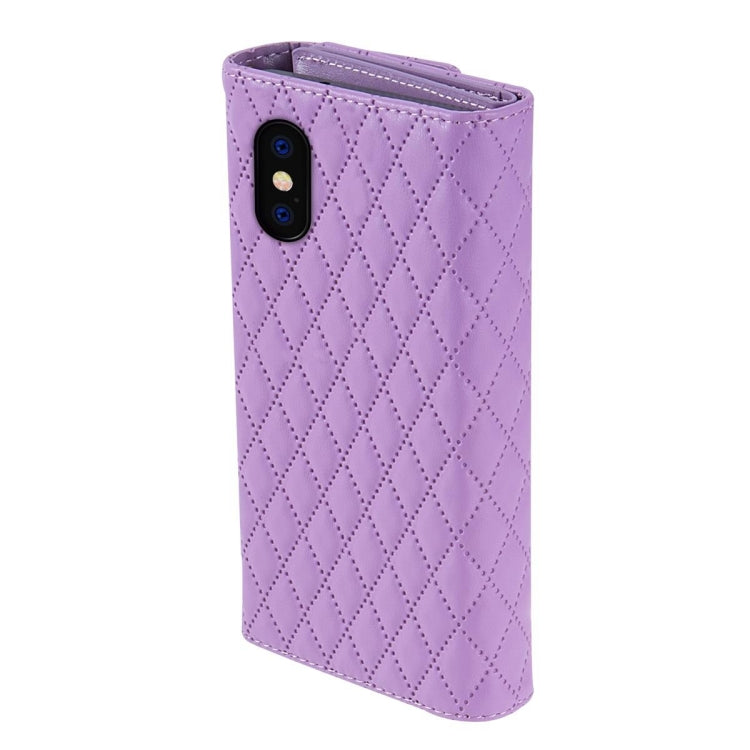 Funda para Teléfono iPhone X / Xs Cuero Rómbico con Billetera MultiTarjeta con Cremallera (Púrpura)