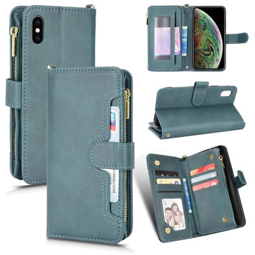 Funda de Cuero para iPhone X / Xs Litchi Texture con Cremallera (Verde)