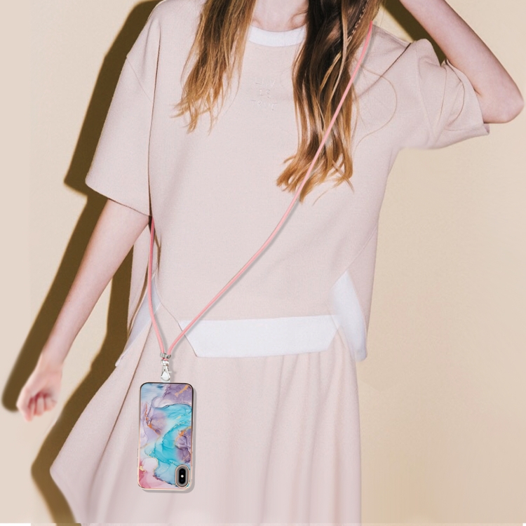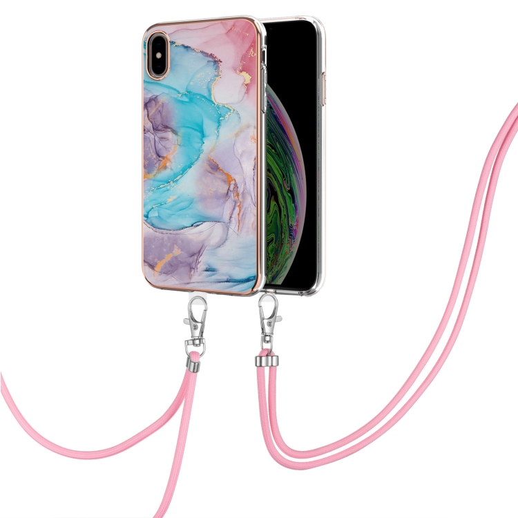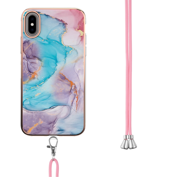 Estuche TPU para iPhone X Xs con Patrón Galvanoplastia Imd a Prueba de Golpes con Cordón para Cuello (Mármol Azul)