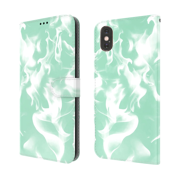 Estuche de Cuero para iPhone X Xs Patrón Niebla En la Nube Tapa Horizontal Soporte Ranura Tarjeta Billetera (Verde Menta)