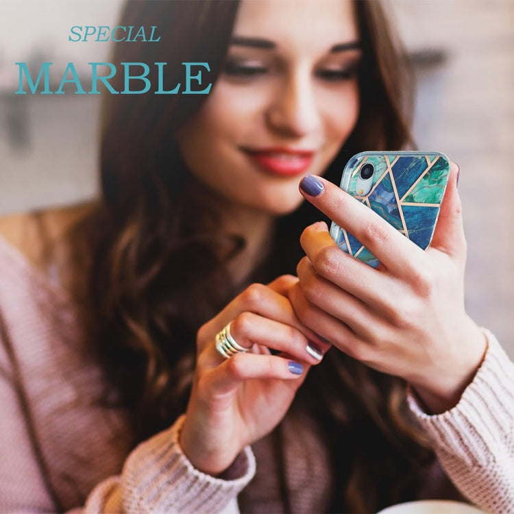 Funda Protectora TPU para iPhone Xr 3D Galvanoplastia Patrón de Mármol (Verde Oscuro)