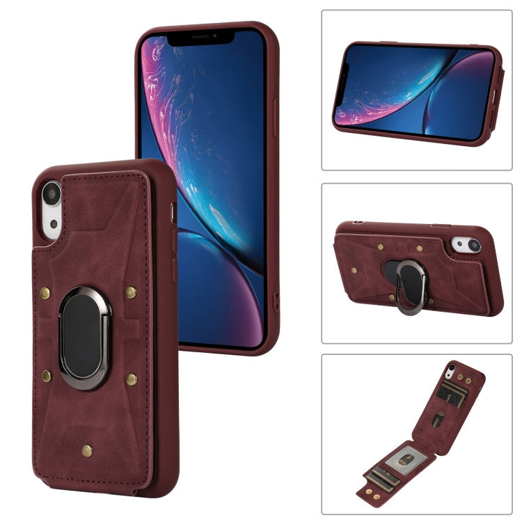 Funda Trasera Armor Ring Wallet para iPhone Xr (Rojo Vino)
