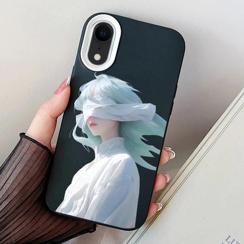 Estuche híbrido para iPhone Xr Blindfold Girl PC y TPU (Negro)