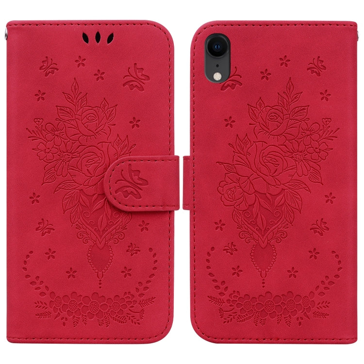 Estuche para Teléfono iPhone Xr Butterfly Rose Cuero en Relieve (Rojo)