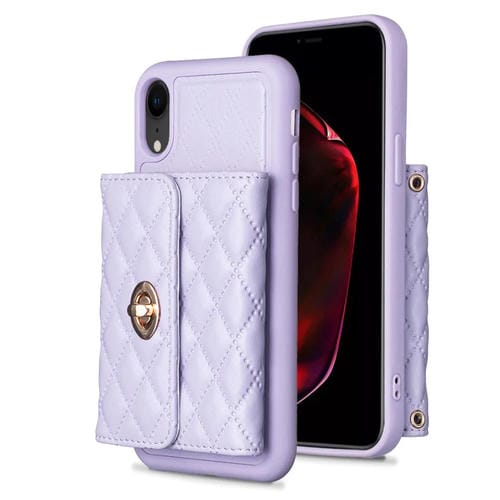 Caja de Teléfono de Cuero Rombal para iPhone Xr con Hebilla de Metal Horizontal (Púrpura)