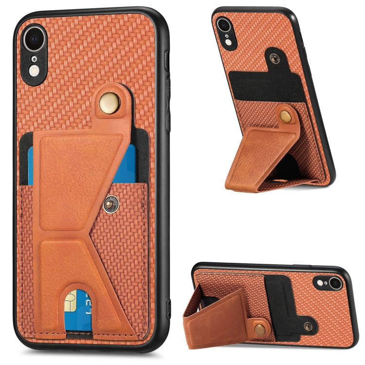 Funda para Teléfono iPhone Xr Carbon Fiber Wallet Flip Card con Soporte en Forma de K (Marrón)