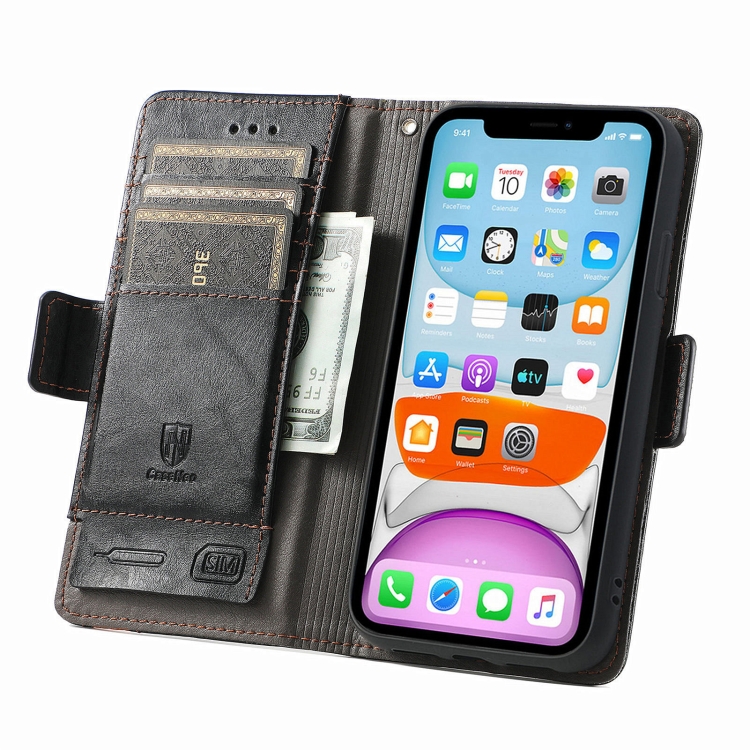 Funda para iPhone Xr Caseneo Business Splicing Dual Magnetic Buckle Horizontal Flip PU Cuero con Soporte y Ranuras para Tarjetas y Billetera (Negro)